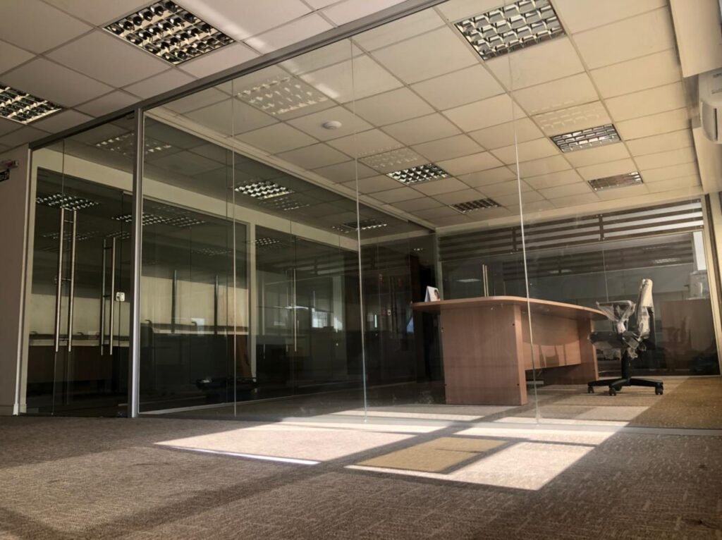 7. Fácil Instalação e Manutenção: A montagem de uma divisória de vidro é geralmente mais rápida e limpa do que a construção de uma parede convencional, além de exigir pouca manutenção ao longo do tempo.
