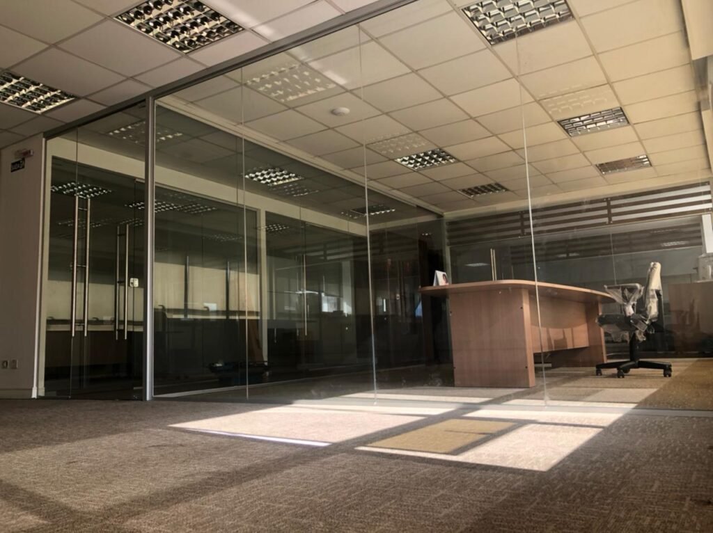 • Escritórios Corporativos: Espaços de trabalho abertos e colaborativos se beneficiam da transparência das divisórias de vidro, promovendo a interação entre os membros da equipe e proporcionando um ambiente estimulante.
